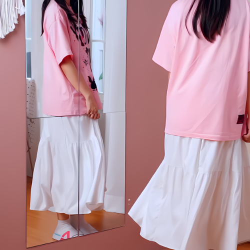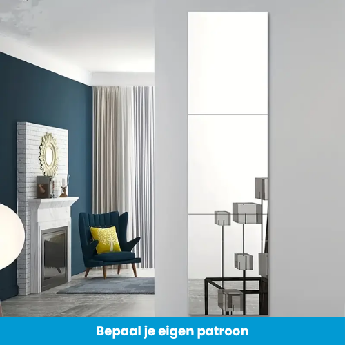 De langwerpige plakspiegel is vervaardigd uit hoogwaardig acryl: een licht, helder en onbreekbaar materiaal dat op het uiterlijk van echt glas doet lijken. Hierdoor is hij veilig in gebruik, zelfs in kinderkamers, badkamers of kleedruimtes. Acryl is bovendien waterdicht en bestand tegen schimmel of vocht, zodat je spiegel jarenlang mooi blijft.