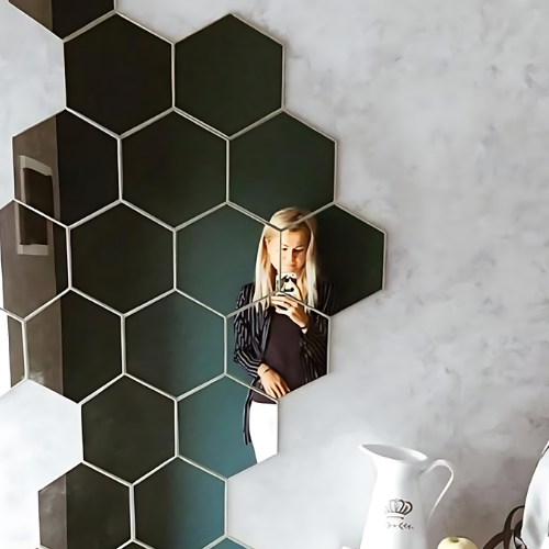 • Hexagon spiegels voor een grafisch statement.